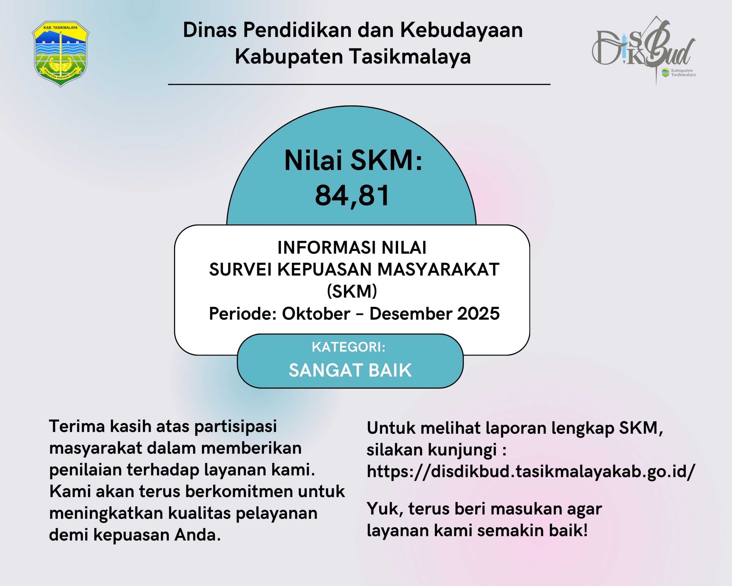 Nilai SKM Periode: Oktober – Desember 2025 Post navigation Dinas Pendidikan dan Kebudayaan Kabupaten Tasikmalaya